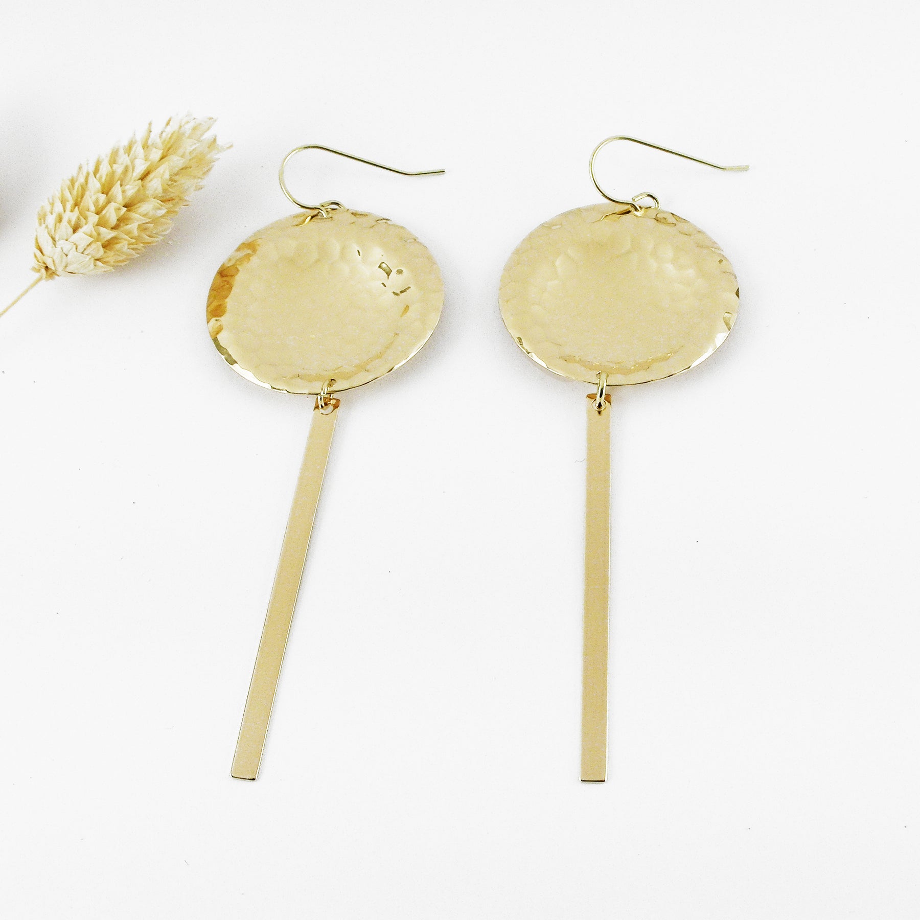 Ces créations sont en laiton brut entièrement découpées, martelées et travaillées à la main.
