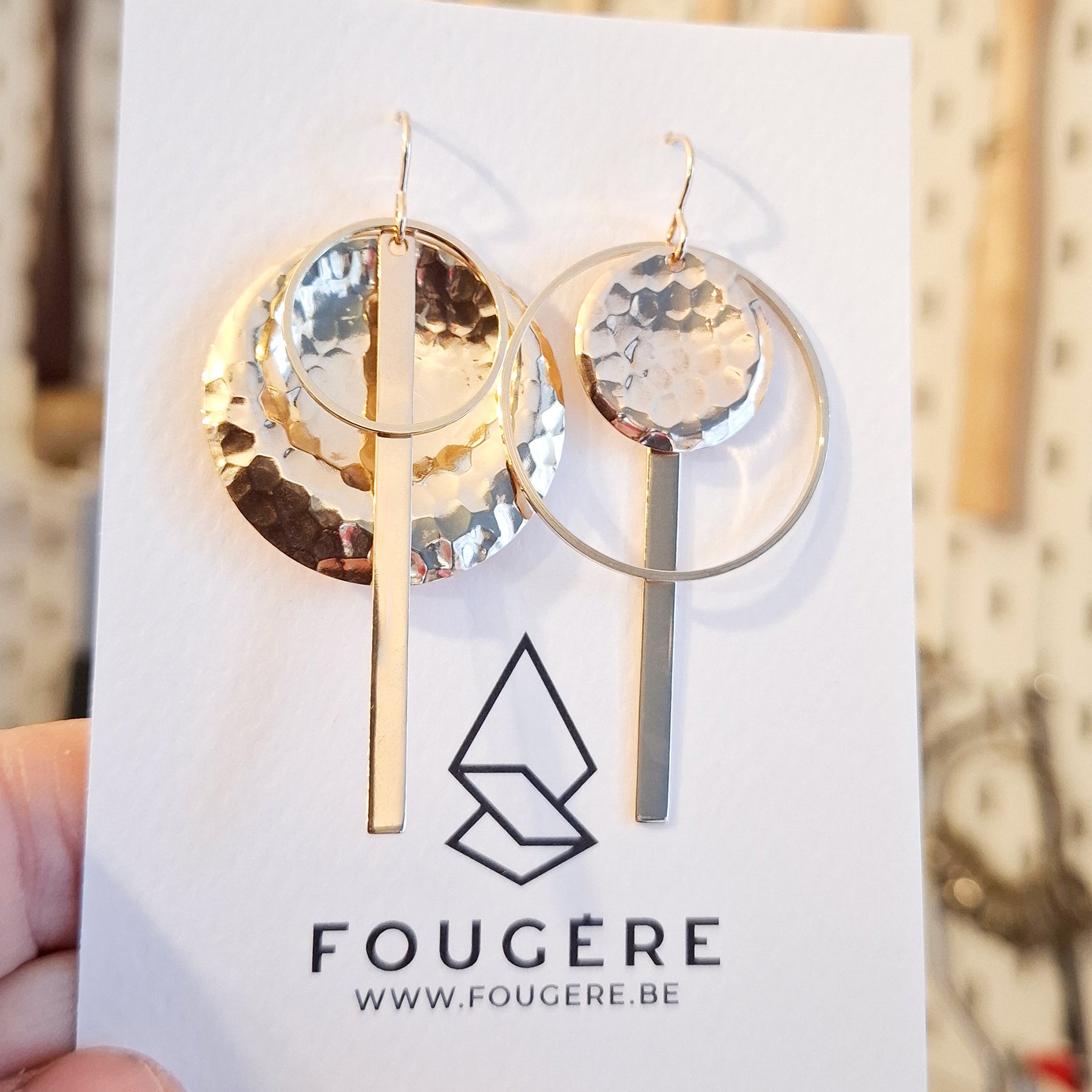 Les bijoux de Fougère sont nés en 2018 et s'étendent sur trois collections : Laiton + couleur, L'atelier et son laiton martelé et Le studio d'Argile avec des boucles en pâte polymère.