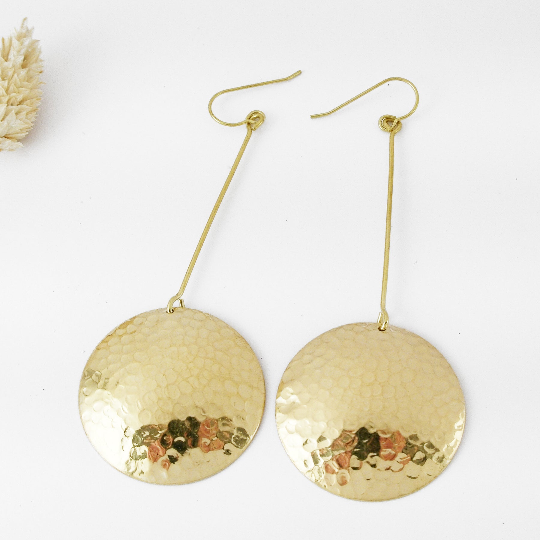 Ces créations sont en laiton brut entièrement découpées, martelées et travaillées à la main.
