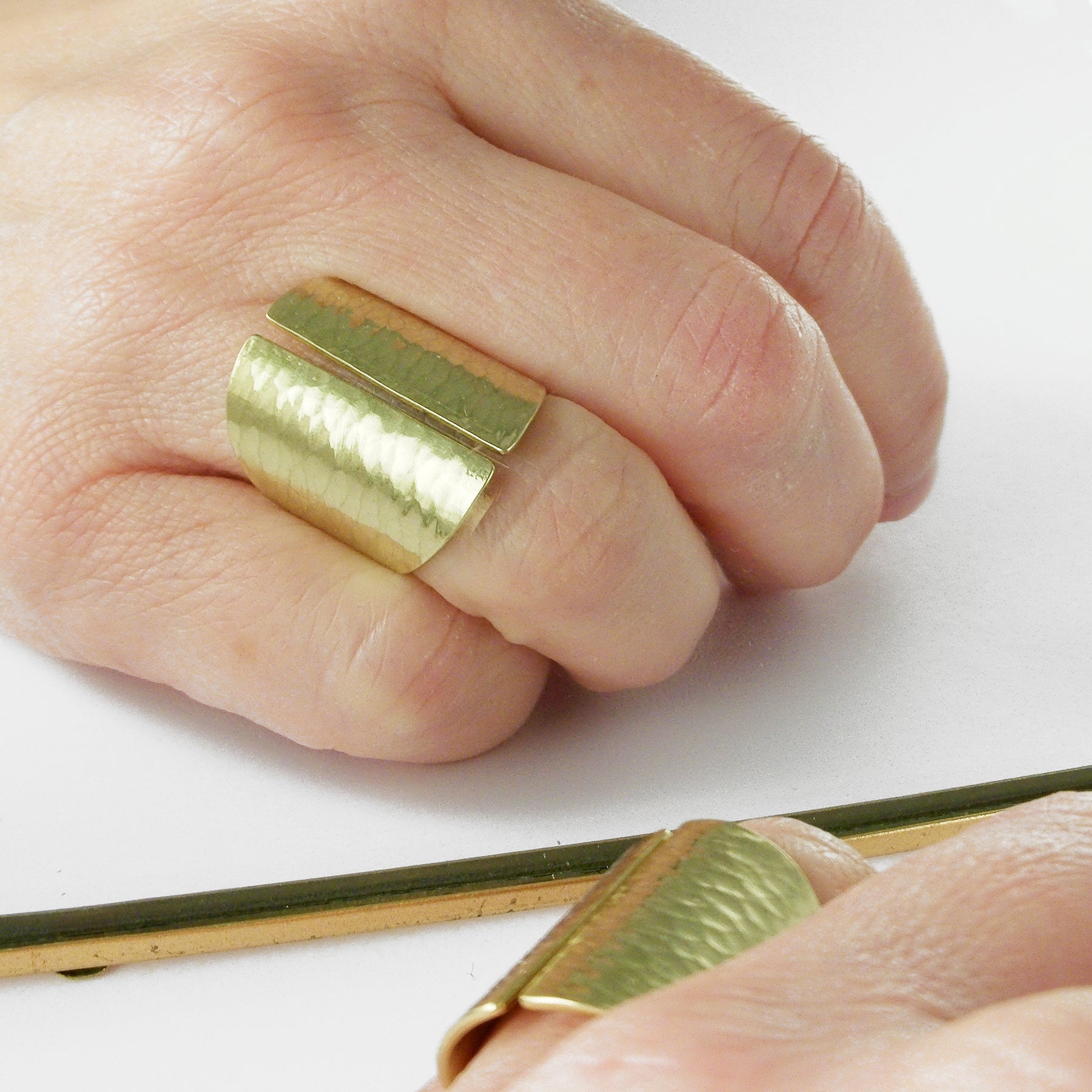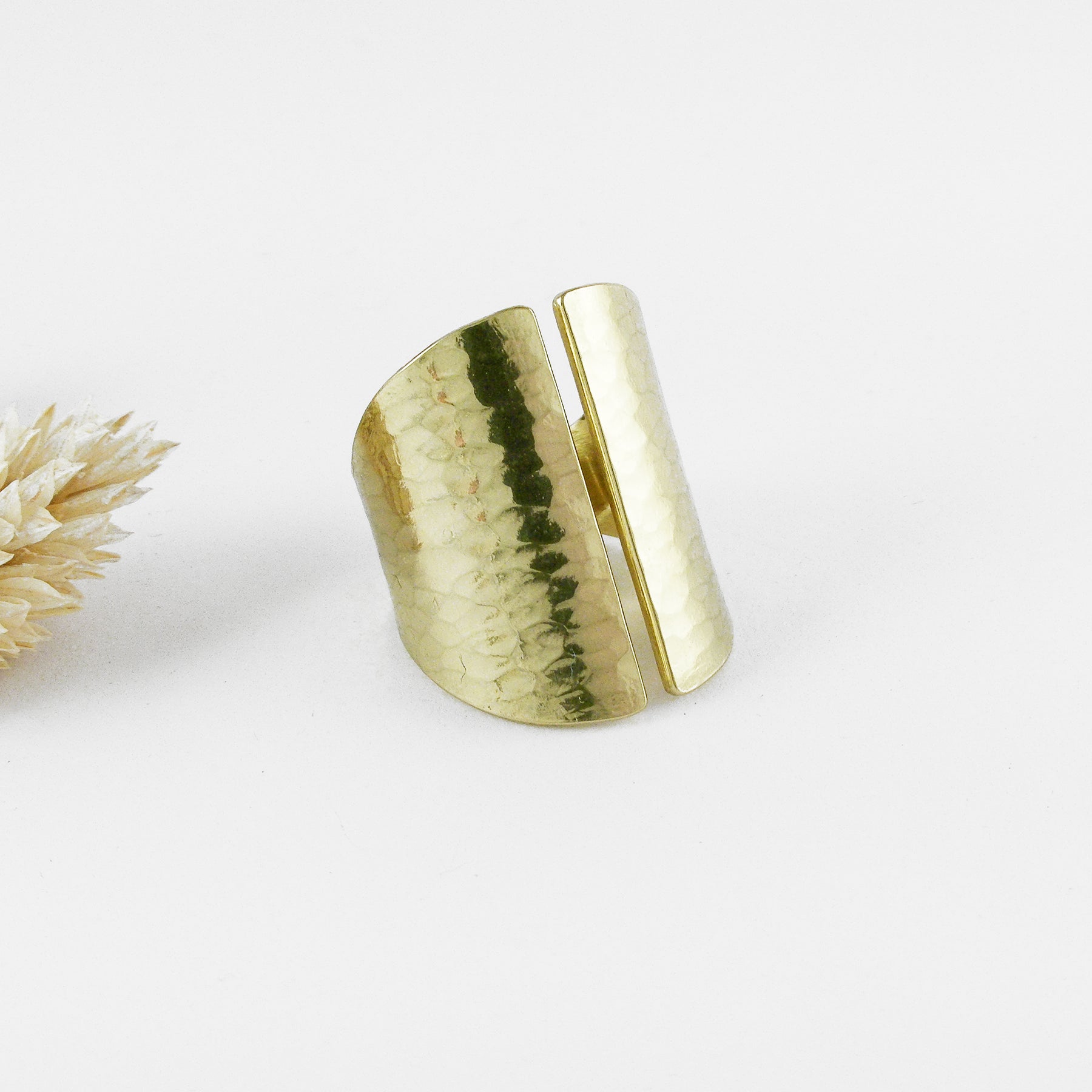 La Tao, une bague manchette en laiton martelé faite entièrement à la main dans mon atelier de Grez-Doiceau, Belgique. En partant de la plaque de laiton, le modèle est découpé, martelé, finalisé et poli entièrement à la main.