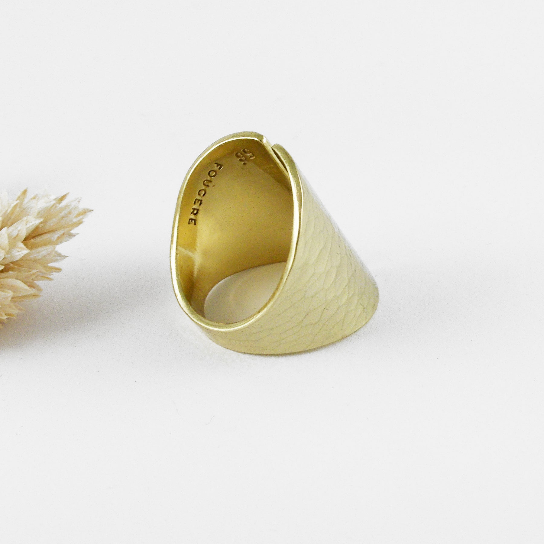 Je propose deux finitions à la bague : laiton "nu" sans finition et laiton verni 3 couches. Découvrez plus de détails dans les onglets ci-dessous concernant ces deux types de finitions.