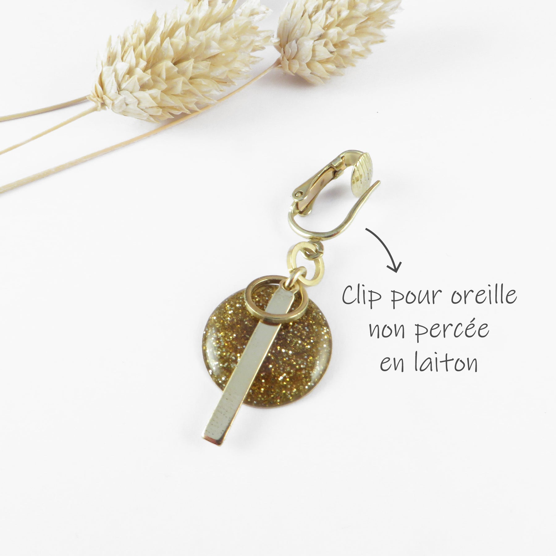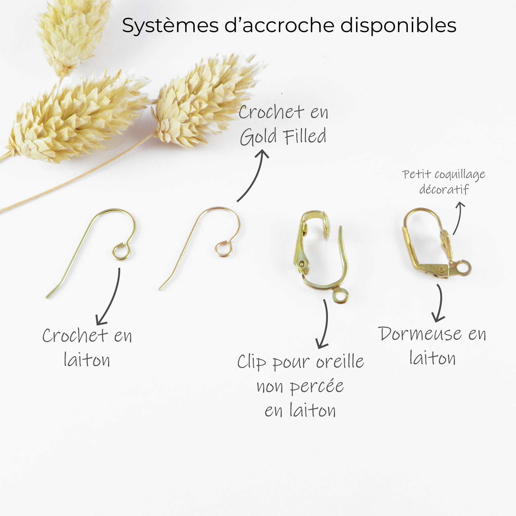 Vous pourrez également choisir les crochets d'oreilles en laiton brut ou en Gold Filled, des dormeuses en laiton ou des clips pour oreilles non percées en laiton (voir dernières photos).